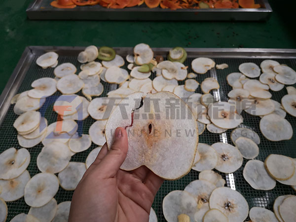 二階段、梨片烘干設備溫度設定為40℃-45℃,烘干2-3小時。