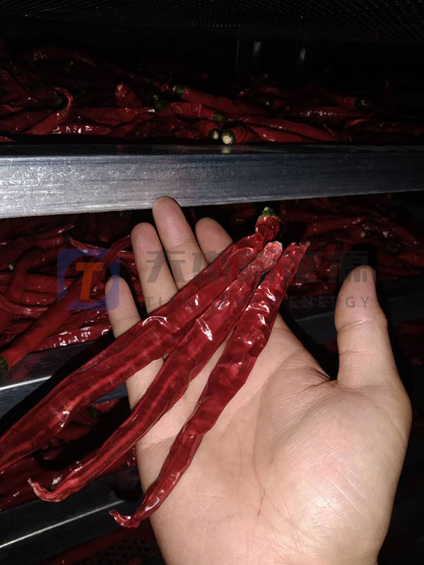 1、恒溫烘干。可以使紅線椒內外均勻加熱,確保紅線椒烘干透,外觀不受損,物料活性及原始物料的顏色和營養得到較大程度的保存;
