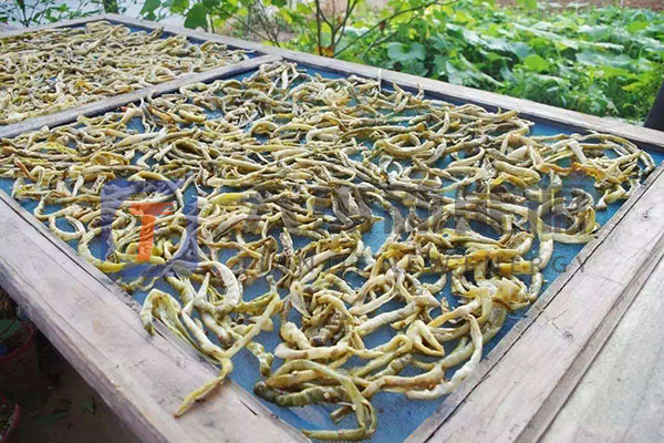 辣椒的堆放厚度力求一致,一般20-30厘米為宜,堆放太薄,透氣性好,風阻小,雖然有利于熱交換.但熱空氣與辣椒的接觸時間相對縮短,熱利用率低.若堆放太厚.則阻力增太,熱空氣無法穿透物層.烘干結果較差