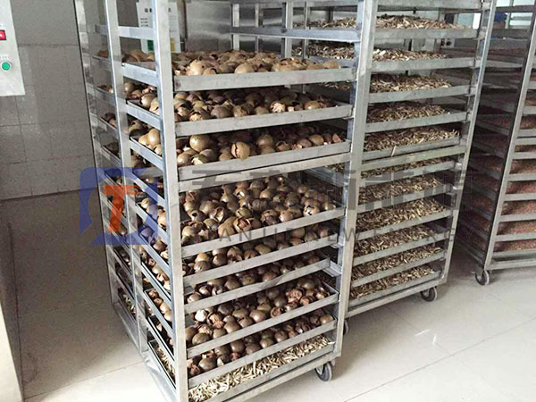 羅漢果烘干設備通過加熱器加熱,大量熱風在機內進行了熱風循環,經過不斷新風補充從進風口進入機體,然后不斷從減濕口排出,這樣增加了傳熱作用,使機內物料水分逐漸減少。
