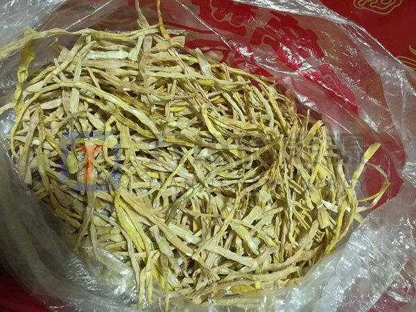 先將清洗處理好的筍體放入鍋中,再加水用猛火煮2~3小時,筍肉由白色變為玉白色,筍體變軟,留心每煮2~3鍋后要換水一次,不然筍干易變色,竹筍的質量和營養價值都會減少,煮熟的竹筍從鍋里撈出后,在進行冷水漂洗,晾干到竹筍表面水分蒸發后,再將漂洗過的筍體分層交織式的平整放在榨機內,逐漸加壓,經1~2小時后,松榨再加重物重壓,直到榨出的水帶有泡沫且略帶赤色,壓榨就完成了。