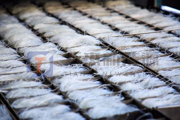 粉絲烘干房是通過壓縮空氣進行升溫(可調溫度為8℃-75℃),能夠比較準確的控制烘干溫度濕度,烘干后的粉絲不變色,口感好,烘干過程不會斷,干度均勻。設備投資少,運行電費低,生產效率高,自動化不用人員看管。