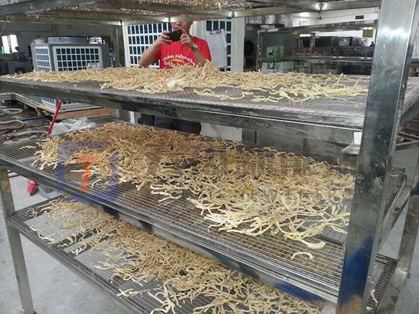 2、在入蘿卜絲烘干機前使用風扇進行脫水,有利于烘干效率。