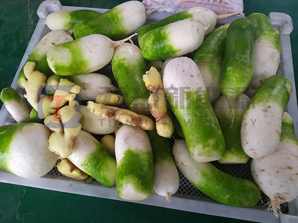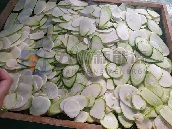白蘿卜烘干工藝的加熱溫度約為37℃左右。白蘿卜含水量比較大,但易出水,所以烘干時間不會特別長。白蘿卜烘干機烘干脫水蔬菜生產工藝,所需用的時間一般不會超過8h,一般從預熱到出產品4-8h即可完成。