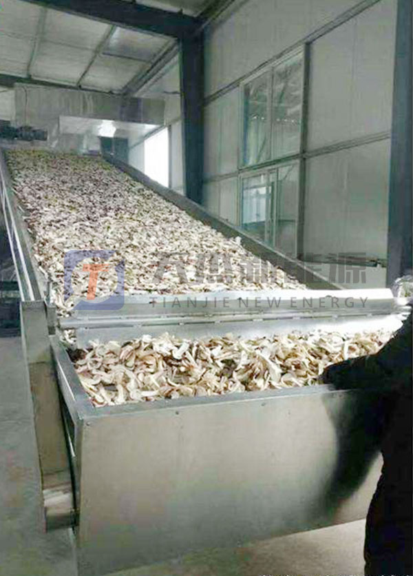 烘干:將刮好的冬瓜皮攤放在網帶冬瓜皮烘干設備的進料口,通過傳送帶送入冬瓜片烘干機進行烘干。